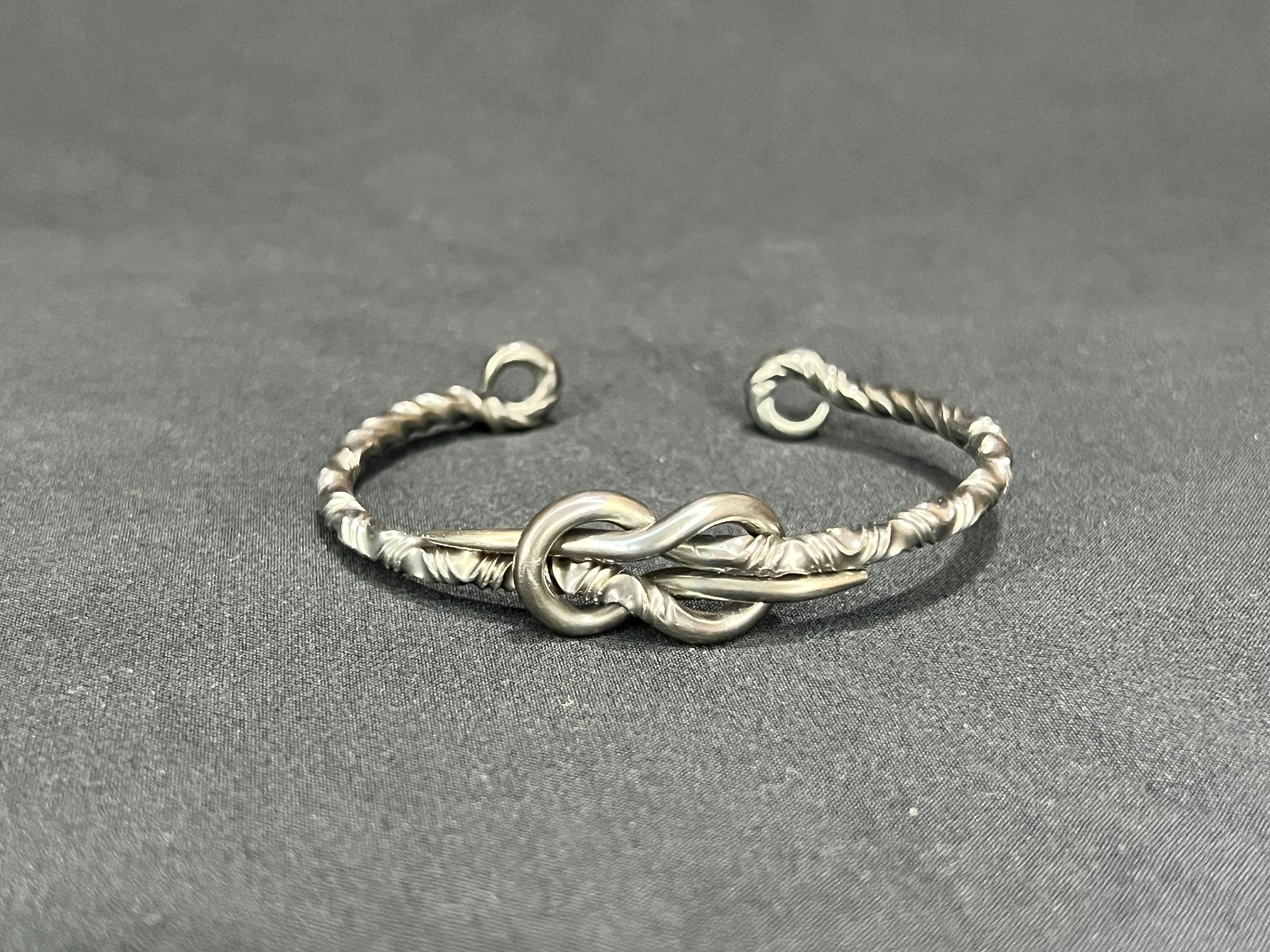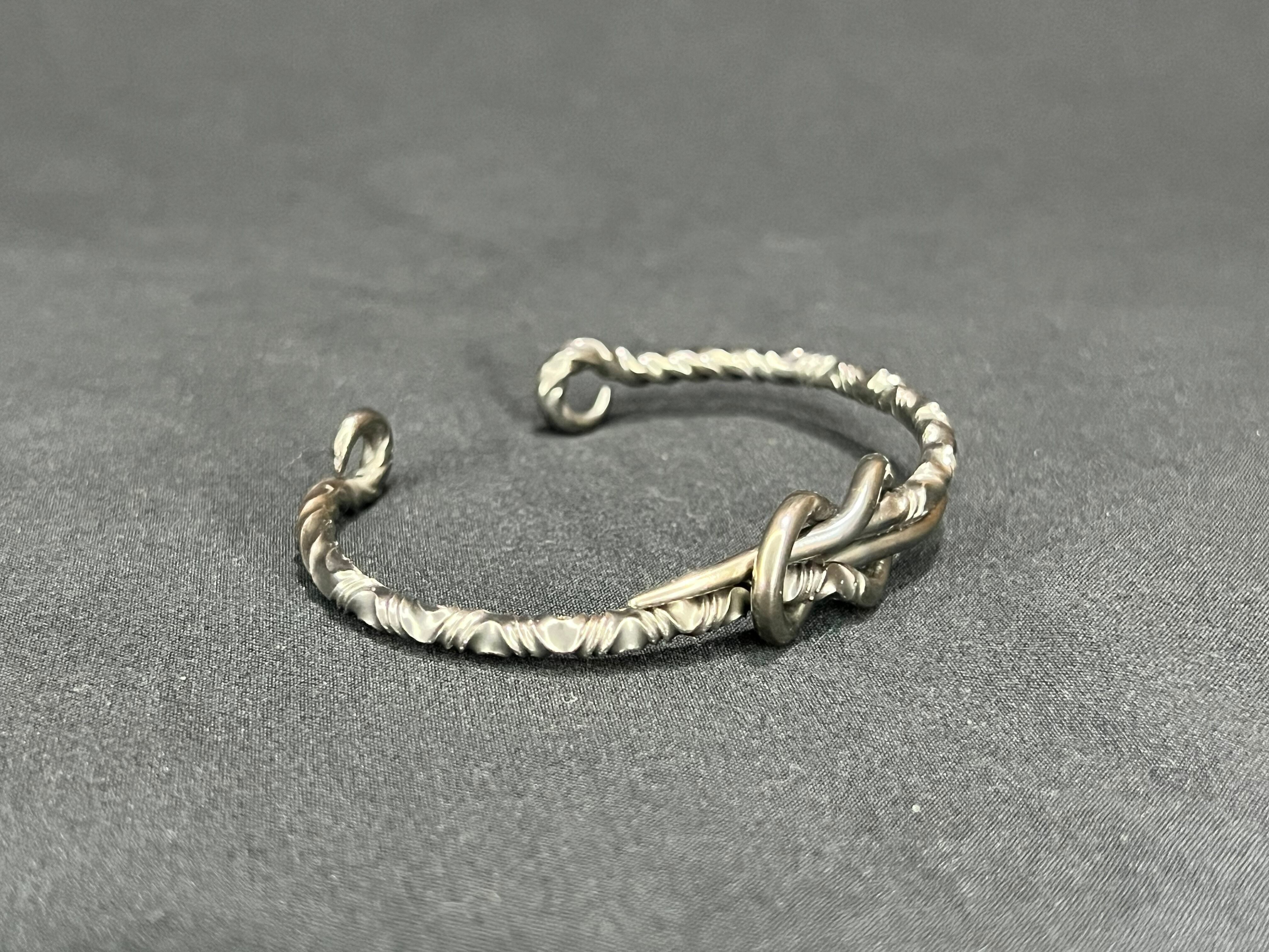 ツイスト加工した2本のステンレス鋼でさらにお互いが絡み付くデザインのオリジナルバングルです。