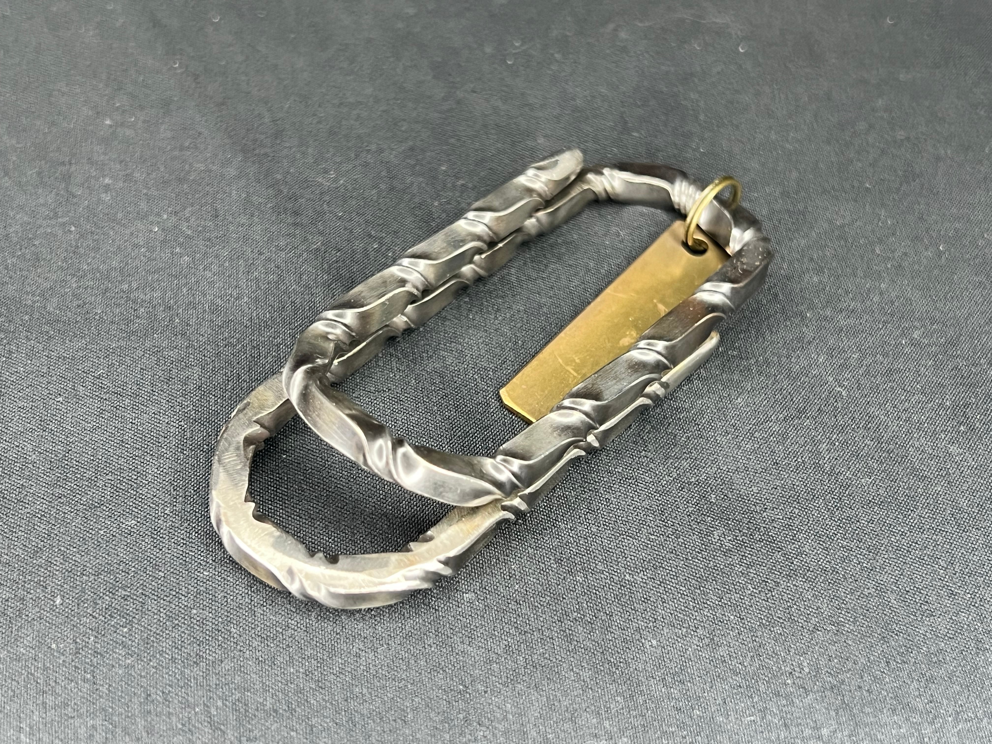 ペーパークリップをモチーフにでっかくしたオリジナルマネークリップです。もちろんお札以外も挟めますが、カード類は推奨しません、